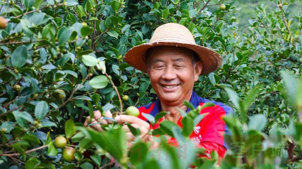 走上觀景臺登高遠眺,山挨著山、嶺連著嶺,油茶林綿延起伏,好像綠色的海洋,隨風掀起幸福的波浪。