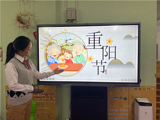 在幼兒園班級(jí)活動(dòng)中,教師通過圖片和視頻等幼兒喜聞樂見的形式,讓幼兒了解重陽(yáng)節(jié)的習(xí)俗,明白了重陽(yáng)節(jié)的意義。孩子們還用彩紙、水彩等為爺爺奶奶制作了賀卡和禮物,表達(dá)自己對(duì)老人的愛。