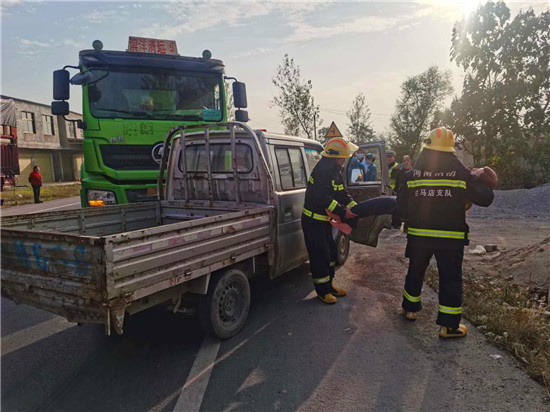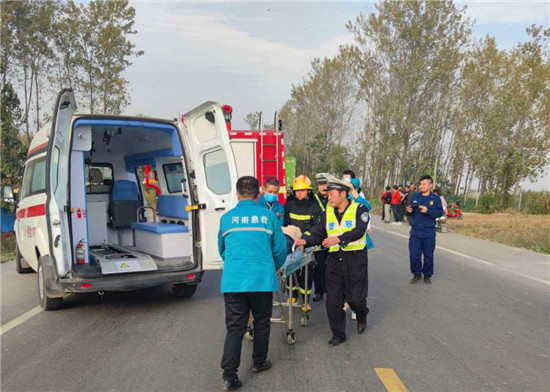 45分鐘的演練,從接警開始到應(yīng)急救援處置,周口市商水縣公安局交警大隊(duì)9名民警和輔警、駐馬店市上蔡縣公安局交警大隊(duì)16名民警和輔警,會(huì)同上蔡消防6名救援人員、4名醫(yī)護(hù)人員和4名車輛拖移人員等,積極協(xié)作,密切配合,將事故中被困車內(nèi)的駕駛?cè)撕褪軅藛T迅速救出并實(shí)施包扎處置,及時(shí)送上急救車迅速前往醫(yī)院搶救。而后,商水縣交警大隊(duì)事故處理民警和上蔡縣交警大隊(duì)民警配合完成事故現(xiàn)場(chǎng)勘查與證據(jù)固定,快速拖移事故車輛,恢復(fù)交通,杜絕了二次事故。