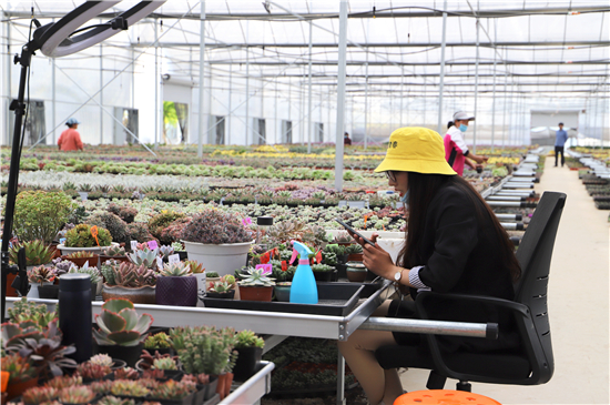 “雙11”剛過,河南“多肉之王”、省電商扶貧帶頭人張國健正帶領(lǐng)著團(tuán)隊(duì)在鄲城縣農(nóng)高區(qū)多肉基地為2300多單精準(zhǔn)發(fā)貨。今年38歲的張國健開過挖掘機(jī)、當(dāng)過銷售員,2014年在南方涉足電商時(shí)摔了大跟頭,賠了70多萬元。回到老家白馬鎮(zhèn)辦了多肉種植基地之后,鄲城縣商務(wù)局等部門與其對接培訓(xùn)了網(wǎng)紅、推薦了人才、在農(nóng)高區(qū)設(shè)立2650平方米的大棚,張國健邁上了快車道,年銷售額在3000萬元以上。今年又增加9個大棚,包括錢店鎮(zhèn)、石槽鎮(zhèn)兩個供貨代養(yǎng)的扶貧大棚,幫扶30多戶貧困戶脫貧,帶動電商從業(yè)人員160余人。