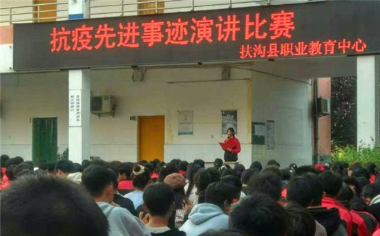 這是扶溝縣職業(yè)教育中心2020級美術(shù)班賈珍珍同學的激情演講。他的演講,感染了在場的1000余名師生。11月14日,為落實扶溝縣教體局《關(guān)于加強新時代中小學思想政治理論課教師隊伍建設工作的實施方案》中“發(fā)掘地方資源,開展先進人物和紅色教育進課堂活動,讓思政課成為有溫度的課”的具體要求,學校思政處組織開展了以歌頌該縣人民醫(yī)院護士劉海燕先進事跡為主題的“抗疫先進事跡”演講比賽。