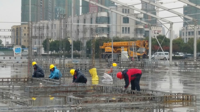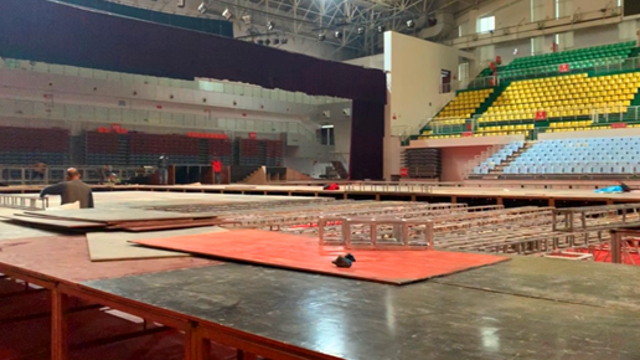 11月23日,記者在周口市體育中心看到,第一屆周商大會展位的搭建工作正在緊張進(jìn)行,目前周商產(chǎn)品展示展覽區(qū)的主體鋼架結(jié)構(gòu)已見雛形