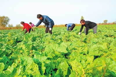 浚縣小河鎮(zhèn)張劉莊村村民喜收白菜本報(bào)記者郭戈攝 |