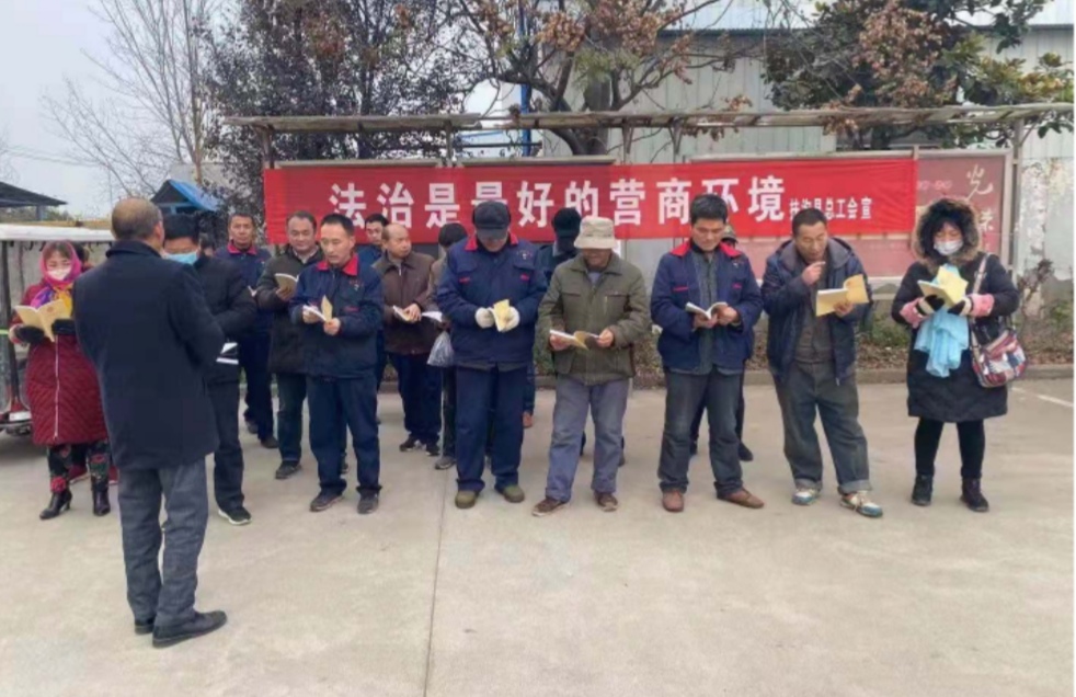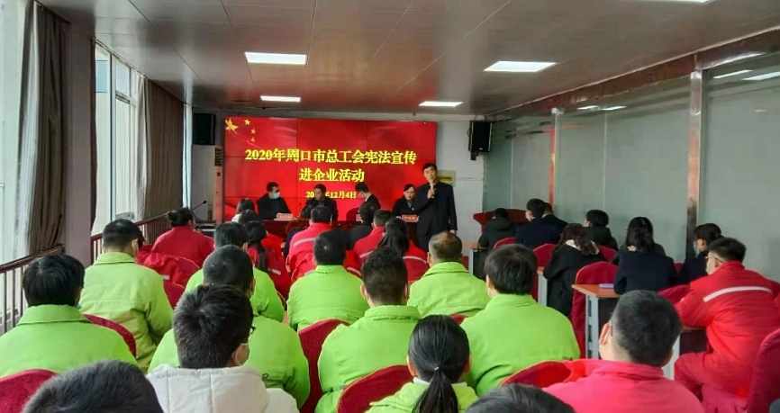 12月4日上午,市總工會到億星集團為工會干部和職工進行普法宣講,組織了職工通過豫工惠進行憲法、民法典知識有獎答題,市總工會法律顧問、律師志愿者講解了《民法典》知識,發(fā)放了工會“一法一條例”(工會法、河南省工會條例)、豫工惠使用手冊指南以及有關(guān)法律法規(guī)資料。市總工會黨組成員、副主席郭建軍組織參加了學(xué)習(xí)宣傳活動。