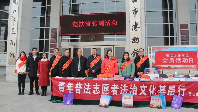 12月3日,在第七個國家憲法日來臨之際,周口市委政法委、周口市法學(xué)會、川匯區(qū)法學(xué)會,聯(lián)合團體會員單位市博物館、市文物保護中心開展憲法、國家安全、反邪教宣傳活動,讓遵守憲法和法律在全社會成為習慣、成為自覺。周口市委政法委副書記張曉、二級調(diào)研員朱建民參加普法宣傳活動。