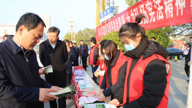 12月4日是第七個國家憲法日。當日上午8時許,縣直各單位在縣人民廣場舉行“12?4”國家憲法日大型集中宣傳活動和“七五”普法工作成果展。
