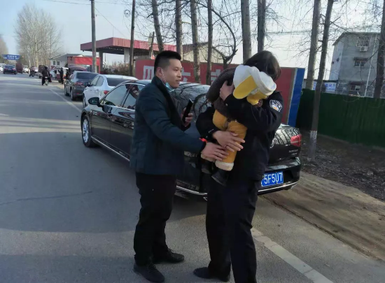 見到報(bào)警人時,民警發(fā)現(xiàn)小女孩還在不停的哭泣,已為人父的顧一諾趕緊將小女孩抱入懷中,輕輕擦拭女孩臉上的淚水,不停的安慰。簡單的向報(bào)警人了解情況后,顧一諾抱著小女孩開始在附近商鋪為其尋找家人,或許是因?yàn)轭櫼恢Z特別會哄小孩,在找尋途中,小女孩竟然趴在顧一諾的肩膀上睡著了,擔(dān)心孩子著涼,顧一諾和同事決定先將小女孩抱回派出所。
