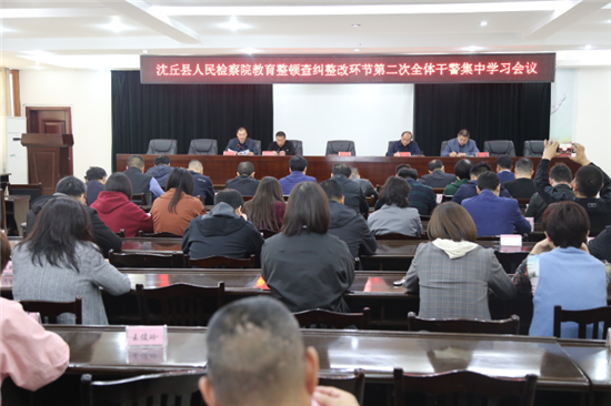 為扎實(shí)做好檢察隊(duì)伍教育整頓查糾整改環(huán)節(jié)工作持續(xù)開展,深入細(xì)致做好思想發(fā)動(dòng)和政策落實(shí),4月19日,沈丘縣檢察院開展隊(duì)伍教育整頓查糾整改環(huán)節(jié)第二次集中學(xué)習(xí)會(huì)議。院黨組成員、政治部主任胡新建主持會(huì)議。全體干警參加會(huì)議。