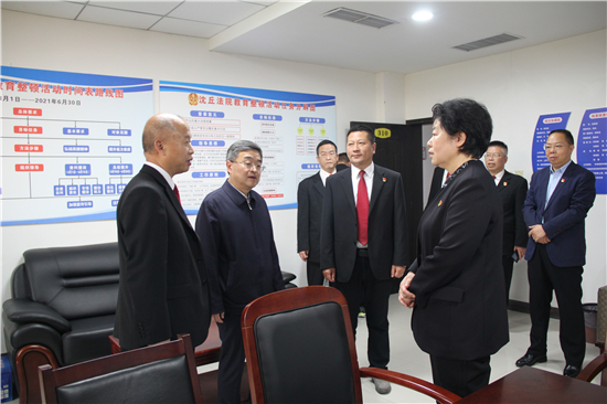 4月30日下午,市委常委、政法委書記路云到沈丘縣法院就隊(duì)伍教育整頓工作進(jìn)行專題調(diào)研指導(dǎo)。沈丘縣委書記皇甫立新,縣委常委、政法委書記段然陪同調(diào)研。