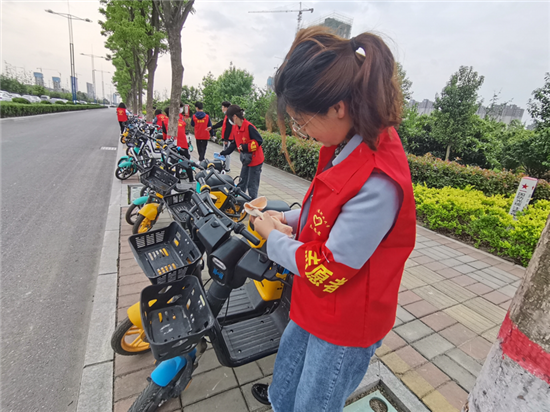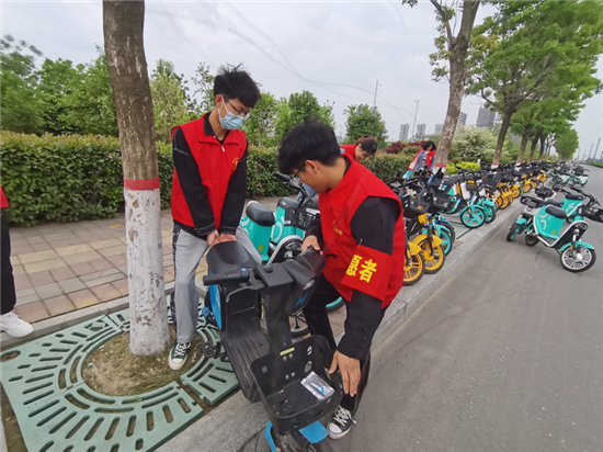 當天上午,由河南科技職業(yè)大學志愿者組成的綠色低碳騎行隊伍,從河南科技職業(yè)大學正門出發(fā)騎行,用實際行動宣傳愛護地球、倡導綠色騎行的理念。騎行結束后,志愿者們組成宣傳引導隊伍,走上大街,引導、糾正共享單車規(guī)范停放,對不規(guī)范停放的共享單車進行整齊擺放,清理共享單車上亂張貼的小廣告,繼續(xù)開啟當日第二場共享單車宣傳引導志愿服務活動。