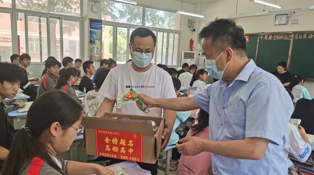 5月30日,團(tuán)市委聯(lián)合愛心企業(yè)到周口市文昌中學(xué)開展“踐行‘周口精神’,助力高考”主題活動。