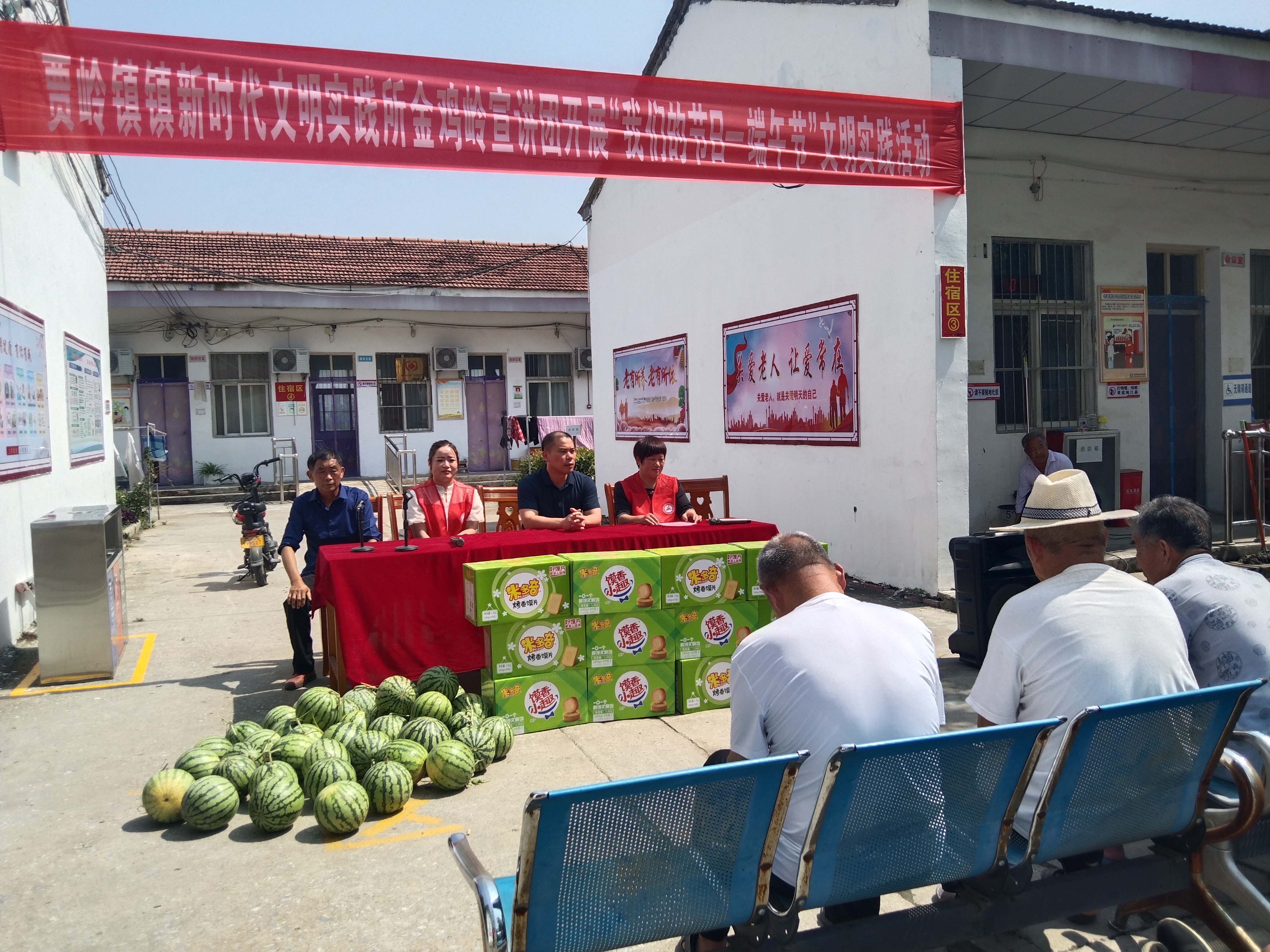 端午節(jié)將至,6月20日上午,項城市賈嶺鎮(zhèn)新時代文明實踐所金雞嶺宣講團(tuán)志愿者走進(jìn)該鎮(zhèn)敬老院,為老人們送去粽子、西瓜、糕點(diǎn)等愛心物品,并為老人們表演大鼓書《百善孝為先》等文藝節(jié)目,以此表達(dá)對老年人的關(guān)愛之情。