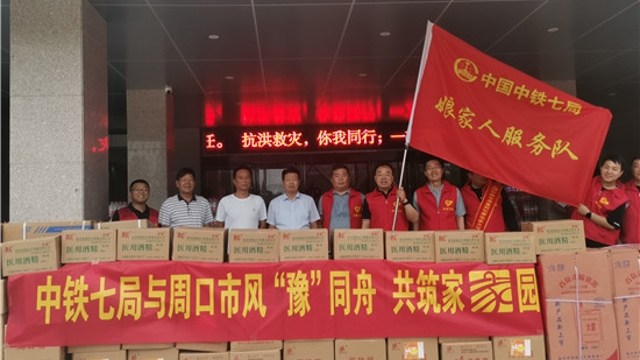 7月28日下午,中鐵七局集團有限公司“娘家人”服務隊,冒雨到黃泛區(qū)農(nóng)場捐贈防汛物資。市總工會黨組成員、副主席李偉業(yè)參加了此次捐贈活動。