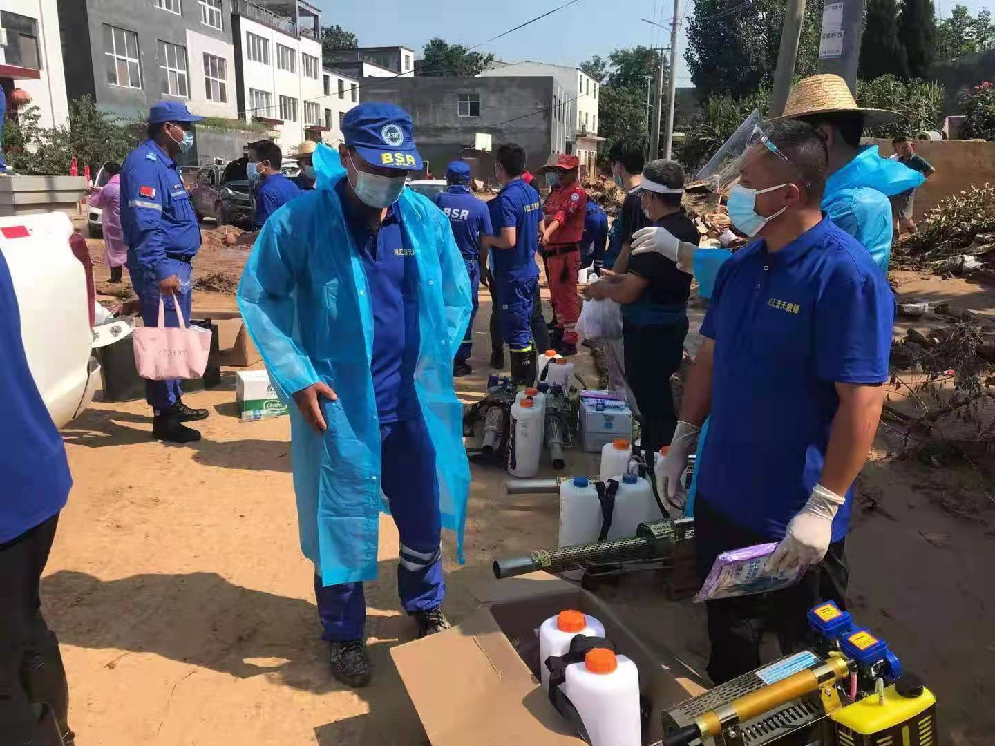 7月29日上午10時,在隊長肖永德的帶領(lǐng)下,周口川匯藍(lán)天救援隊30名隊員趕赴鄭州滎陽受災(zāi)較重的賈峪鎮(zhèn)賈峪村進(jìn)行災(zāi)后消殺工作。
