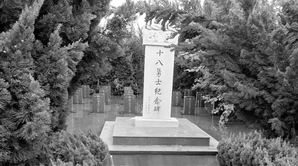 十八勇士,年輕的生命雖然短暫卻因抗戰(zhàn)而燦爛,如花的青春盡管凋零卻因捐國而永恒。那些鐫刻在石碑上的一個個名字像鮮活生命,無聲地訴說著對侵略者的仇恨。烈士的墓碑六人一排整齊排列,以出征的姿態(tài)表達了出師未捷身先死的遺恨。