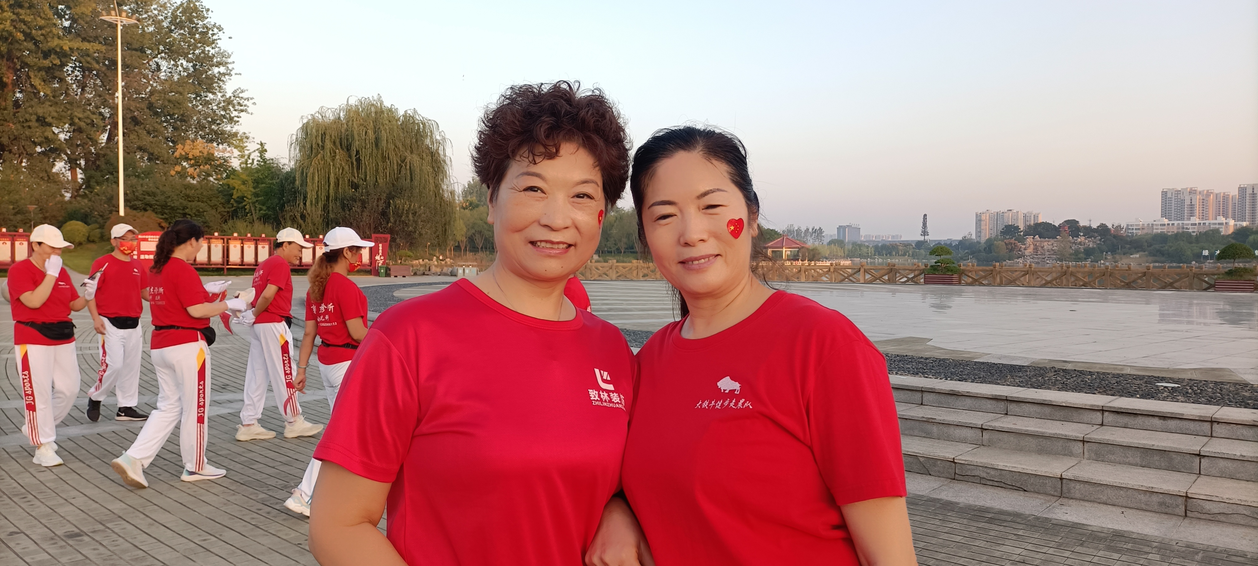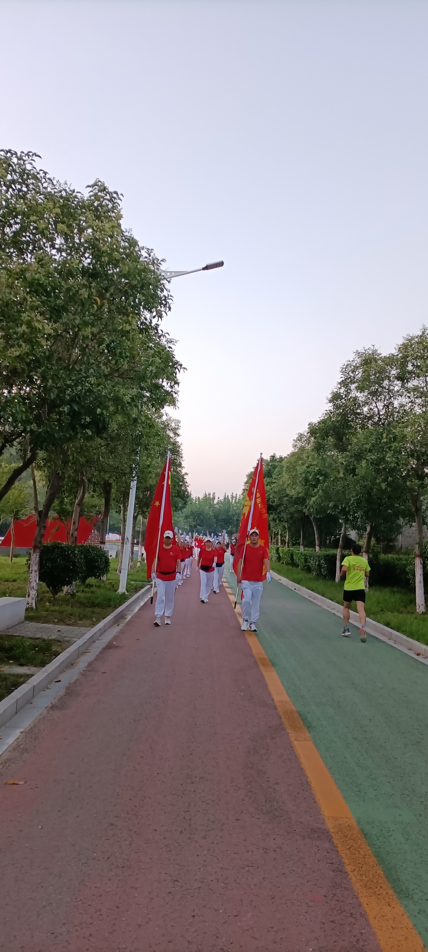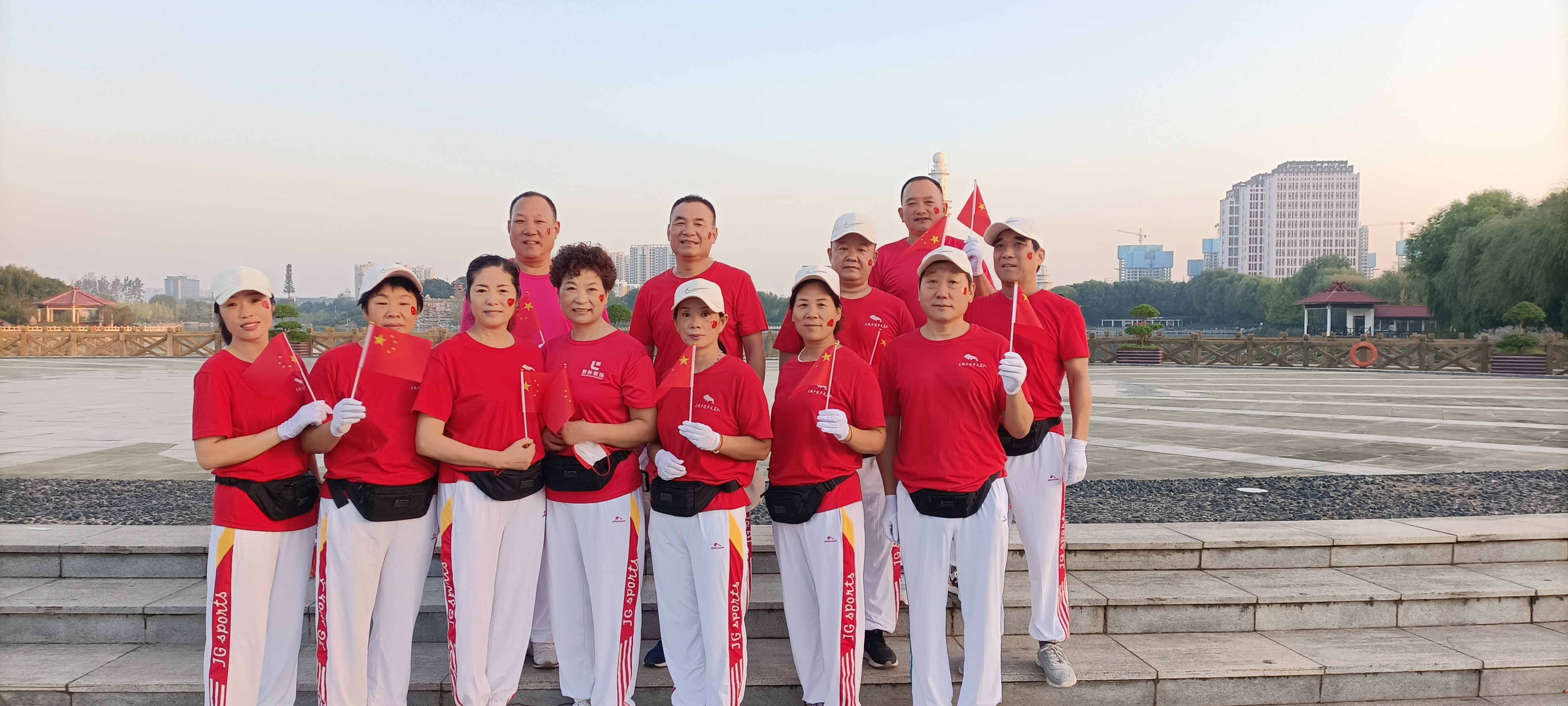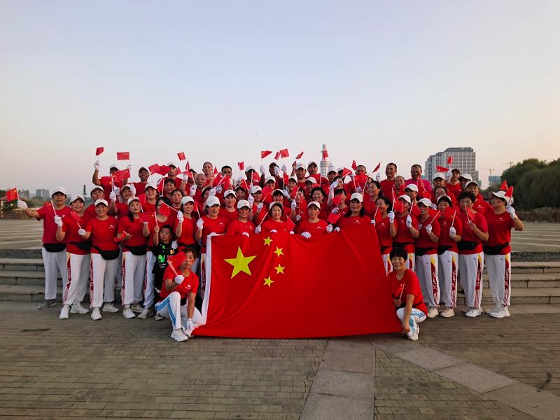 10月1日清晨,周口健步走大鐵牛晨隊(duì)的100余名隊(duì)員手持國(guó)旗,邁著矯健的步伐,迎著初升的朝陽,行走在周口公園,以健康的身姿慶祝祖國(guó)生日。周口日?qǐng)?bào)·周道客戶端記者 高洪馳攝