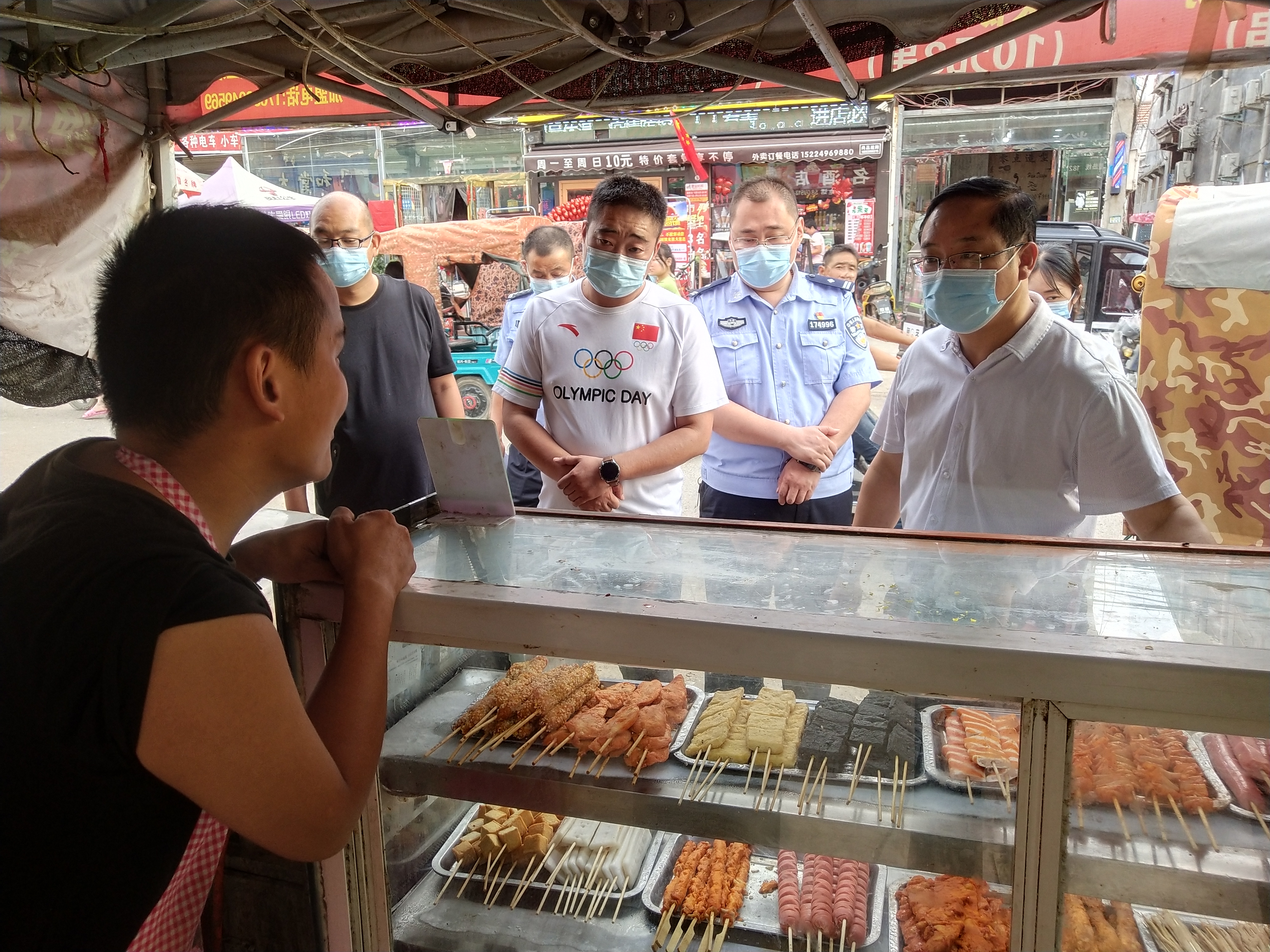 “你們這個(gè)超市經(jīng)營面積多少?配備多少消防栓、滅火器?有幾個(gè)逃生通道?員工是否熟知消防安全常識(shí)?油炸熟食肉類食品是如何保障質(zhì)量的……”“咱樓上樓下營業(yè)面積共2000平方米,配備20個(gè)消防栓、60個(gè)滅火器,有2個(gè)逃生通道,每周都對員工進(jìn)行消防安全演練,每一批食品都有檢測報(bào)告……”10月1日下午,商水縣平店鄉(xiāng)黨委書記段文海、鄉(xiāng)長位望喜、主管安全生產(chǎn)的副鄉(xiāng)長劉春苗帶隊(duì),組織鄉(xiāng)派出所、市場監(jiān)督所相關(guān)人員到安全生產(chǎn)重點(diǎn)場所“萬果園超市90號(hào)”連鎖店開展國慶節(jié)安全生產(chǎn)暗訪檢查,超市負(fù)責(zé)人呂四偉詳細(xì)介紹了安全經(jīng)營情況。