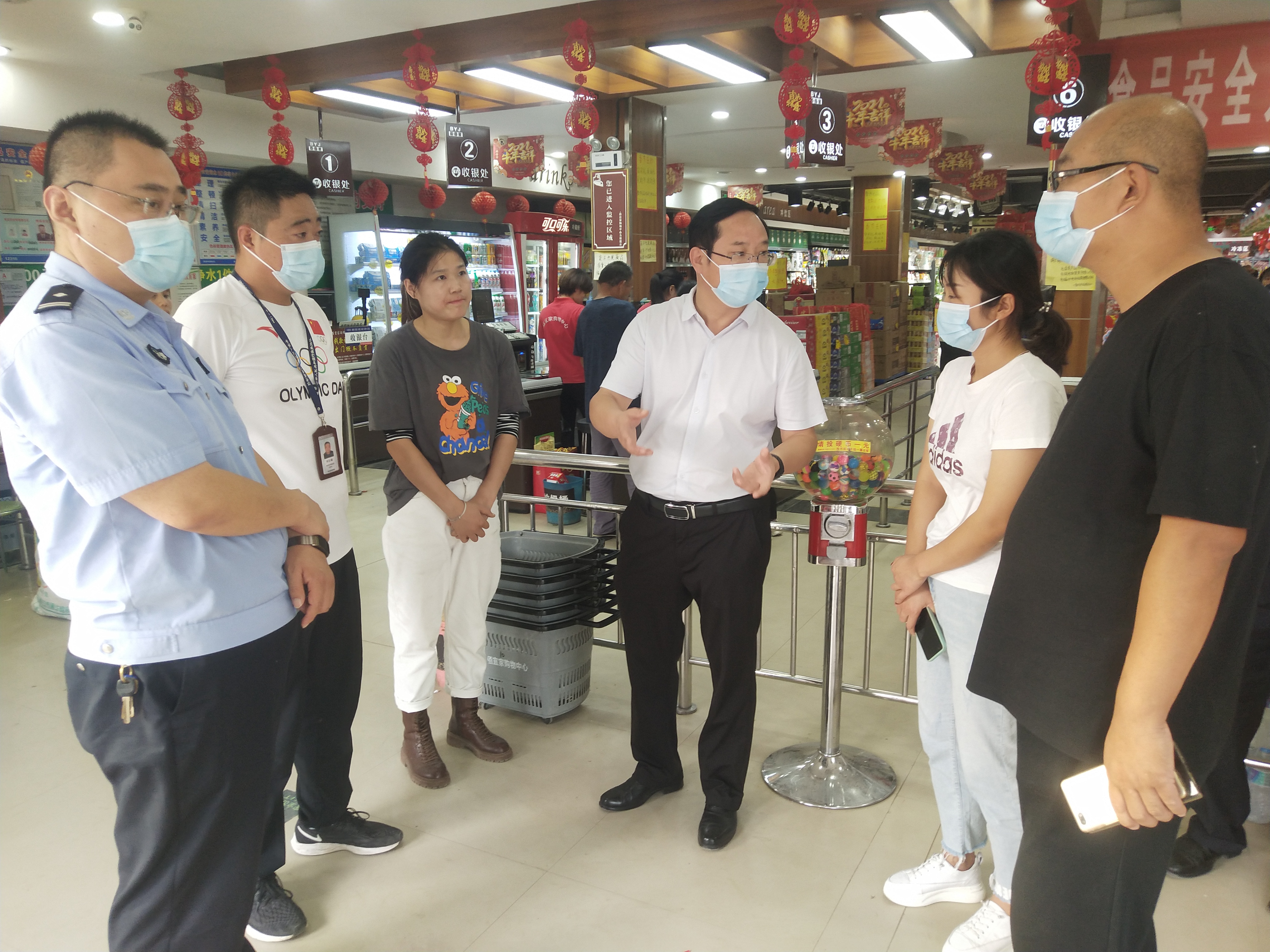 “通過突擊暗訪檢查發(fā)現(xiàn),你們能夠時(shí)刻繃緊安全生產(chǎn)這根弦,安全防范工作措施比較到位。時(shí)值國慶假期,外出返鄉(xiāng)人員增多,人流物流顯著增加。你們對顧客員工佩戴口罩防疫情把關(guān)不嚴(yán)、門前車輛亂停亂放、臟亂差要整改,必須確保人民群眾過一個(gè)安樂祥和安全干凈的節(jié)日……”臨走時(shí),段文海對負(fù)責(zé)人進(jìn)行了親切叮囑。