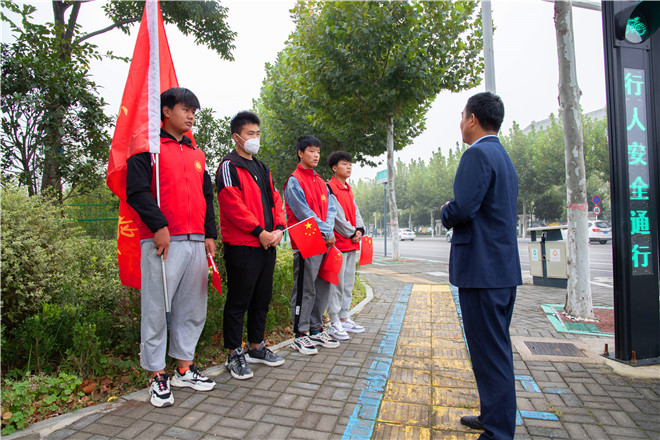 近日,在周口城鄉(xiāng)一體化示范區(qū)人和路和平安路交匯口,一群身穿印有“周口交通技師學(xué)院”字樣紅色馬甲的忙碌身影引來眾多路人注目。他們時(shí)而糾正個(gè)別行人的不規(guī)范交通行為,時(shí)而引導(dǎo)過往車輛按道路標(biāo)識(shí)行駛,看到老幼人群和行動(dòng)不便的市民,立即上去攙扶,幫助他們安全通過馬路。他們熱情的服務(wù)獲得了市民的認(rèn)可和稱贊。