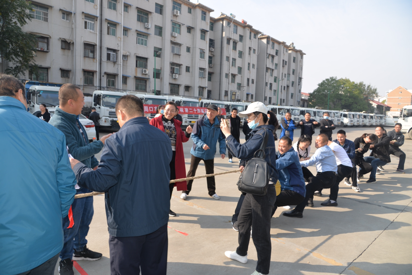 在隨后進(jìn)行的環(huán)衛(wèi)工人運(yùn)動(dòng)會(huì)上,共進(jìn)行4人百米接力賽、跳繩和拔河3個(gè)項(xiàng)目的比賽。跳繩比賽,隊(duì)員們相互支持,齊心起跳,配合默契。4人百米接力賽,大家沖刺如閃電,比速度、比技巧,樂趣無窮。拔河比賽,你拉我拽,使出渾身解數(shù),陣陣歡聲笑語,加油吶喊聲一片,將氣氛推向高潮。