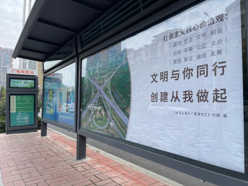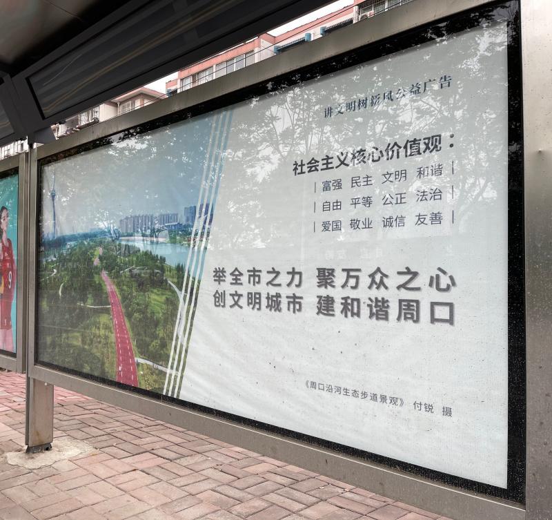 周口市公交總公司總經(jīng)理助理朱懷彬表示,為確保文明標(biāo)語(yǔ)能讓市民抬眼可見(jiàn)、駐足即觀,目前,我市中心城區(qū)公交候車(chē)臺(tái)的公益廣告牌投放覆蓋率已超過(guò)50%?!盁ㄈ灰恍碌墓徽九_(tái),既扮靚了周口的城市面貌,提升了市民的出行體驗(yàn),又潛移默化地把社會(huì)主義核心價(jià)值觀根植于市民內(nèi)心?!敝鞈驯蛘f(shuō)。②10