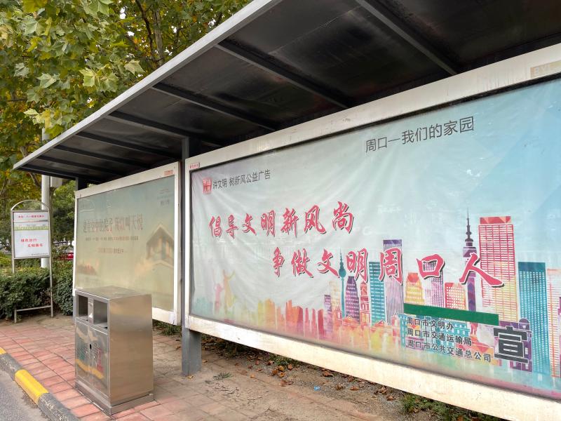 公交站臺(tái)作為城市文化傳播的符號(hào)之一,對(duì)城市形象的提升有著重要意義。10月26日,記者走訪了我市中心城區(qū)公交候車(chē)臺(tái),隨處可見(jiàn)的公益廣告牌引人注目,“文明與你同行,創(chuàng)建從我做起”“倡導(dǎo)文明新風(fēng)尚,爭(zhēng)做文明周口人”“舉全市之力,聚萬(wàn)眾之心,創(chuàng)文明城市,建和諧周口”,一句句文明標(biāo)語(yǔ)為周口創(chuàng)建全國(guó)文明城市增光添彩。