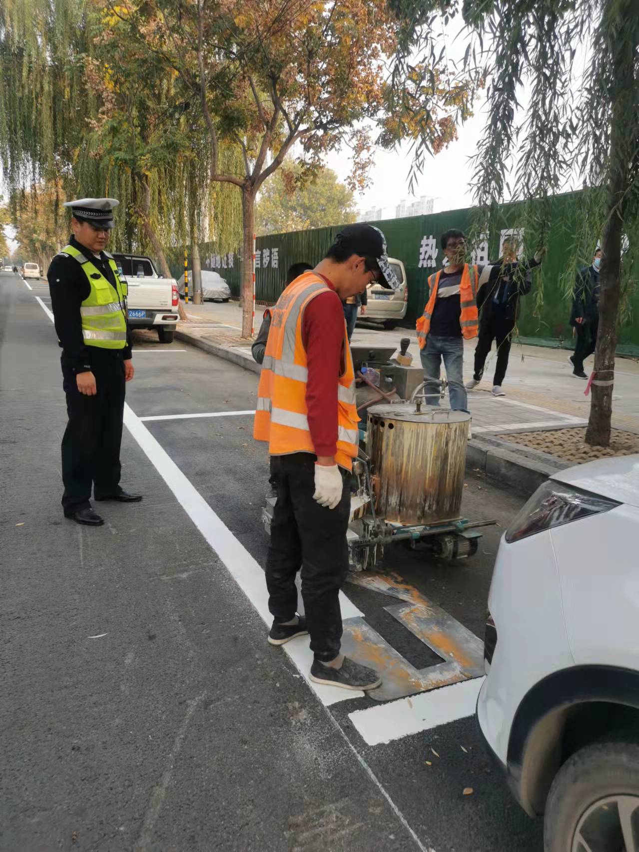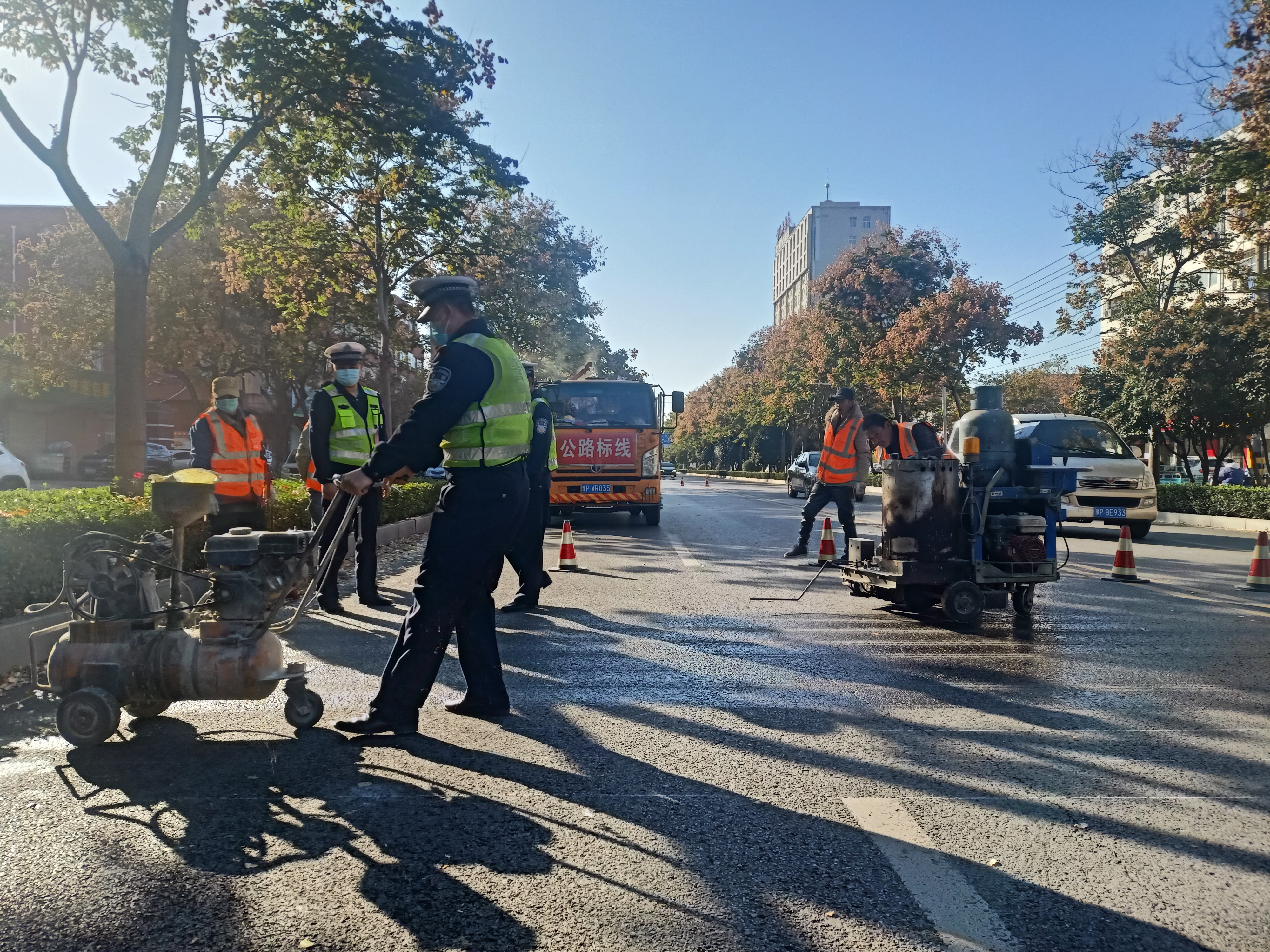 當(dāng)日下午,記者在黃河路看到,施工人員正在熟練地操作標(biāo)線機(jī),認(rèn)真細(xì)致地施劃減速震蕩標(biāo)線。市公安局交通管理支隊(duì)設(shè)施維護(hù)中心(以下簡稱設(shè)施維護(hù)中心)工作人員黃勇說:“在創(chuàng)文期間,設(shè)施維護(hù)中心加大對(duì)道路護(hù)欄的清洗力度,完善交通信號(hào)燈的維護(hù),清除學(xué)校門口不合理的停車位,修剪遮擋交通設(shè)施的樹枝,排除路口的交通隱患?!?/p>