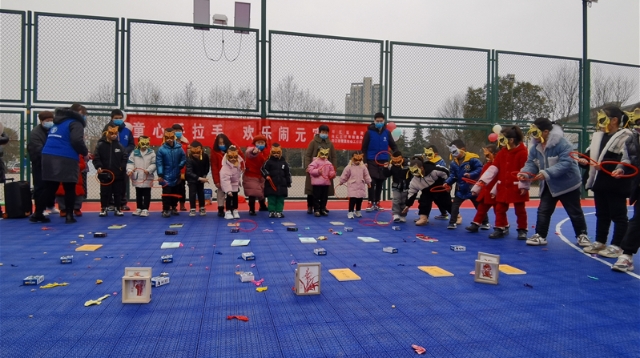 2月15日是元宵節(jié),川匯區(qū)城南街道辦事處聯(lián)盟新城社區(qū)廣場(chǎng)上,一群戴著老虎面具的“虎娃”正在參加“童心手拉手 歡樂(lè)鬧元宵”活動(dòng)。