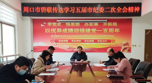 2月16日,周口市僑聯(lián)召開黨組(擴大)會議,傳達學習市委五屆二次全會暨市委經(jīng)濟工作會議精神,市僑聯(lián)黨組書記、主席馮連根主持會議。