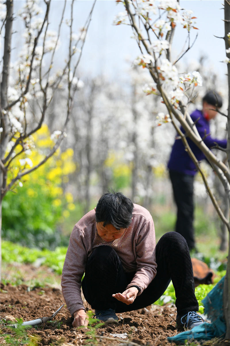“谷雨前后,種瓜點(diǎn)豆?!本嚯x谷雨節(jié)氣還有20多天,市城鄉(xiāng)一體化示范區(qū)文昌辦事處陳灘村的農(nóng)民趁著雨后好墑情,在花開如雪的梨園深處除草、點(diǎn)種黃瓜籽。周口日報(bào)·周道客戶端記者 梁照曾 攝