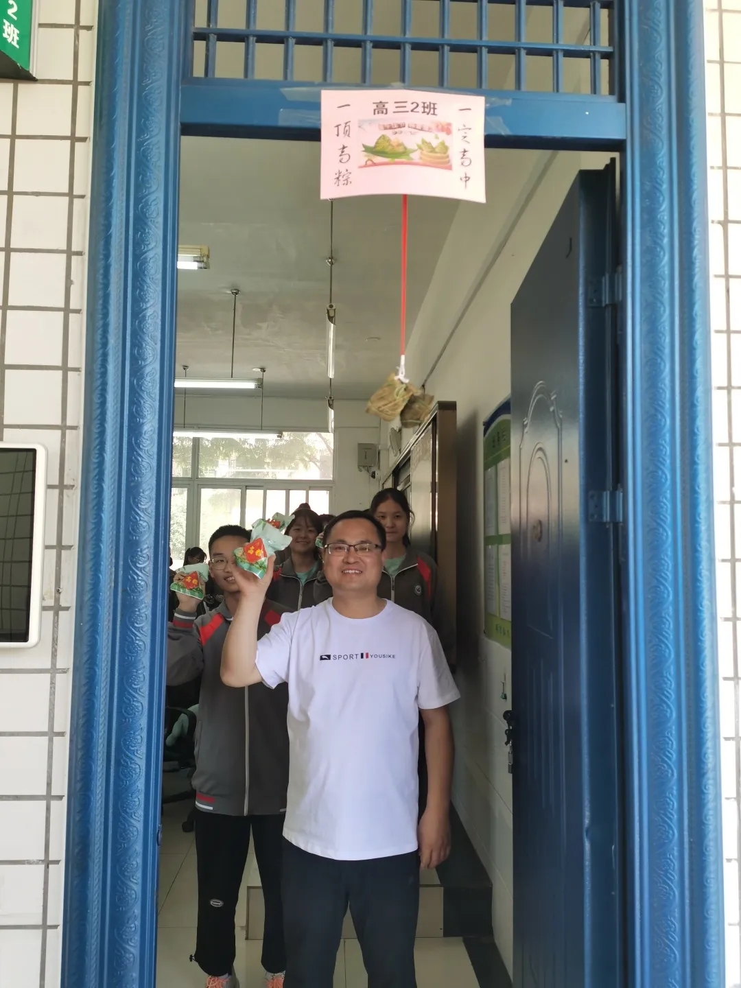 小小粽子,深深情誼。同學(xué)們接過粽子,滿懷感恩,臉上洋溢著喜悅的笑容。老師們還將粽子掛在教室門口,同學(xué)們離開教室時輕快跳起,用頭頂粽子,寓意“一定高中”,中午就餐時間,熱氣騰騰的粽子讓同學(xué)們通過舌尖上的美味感知傳統(tǒng)文化魅力,在愉悅的氛圍中煥發(fā)昂揚斗志,實踐青春誓言。