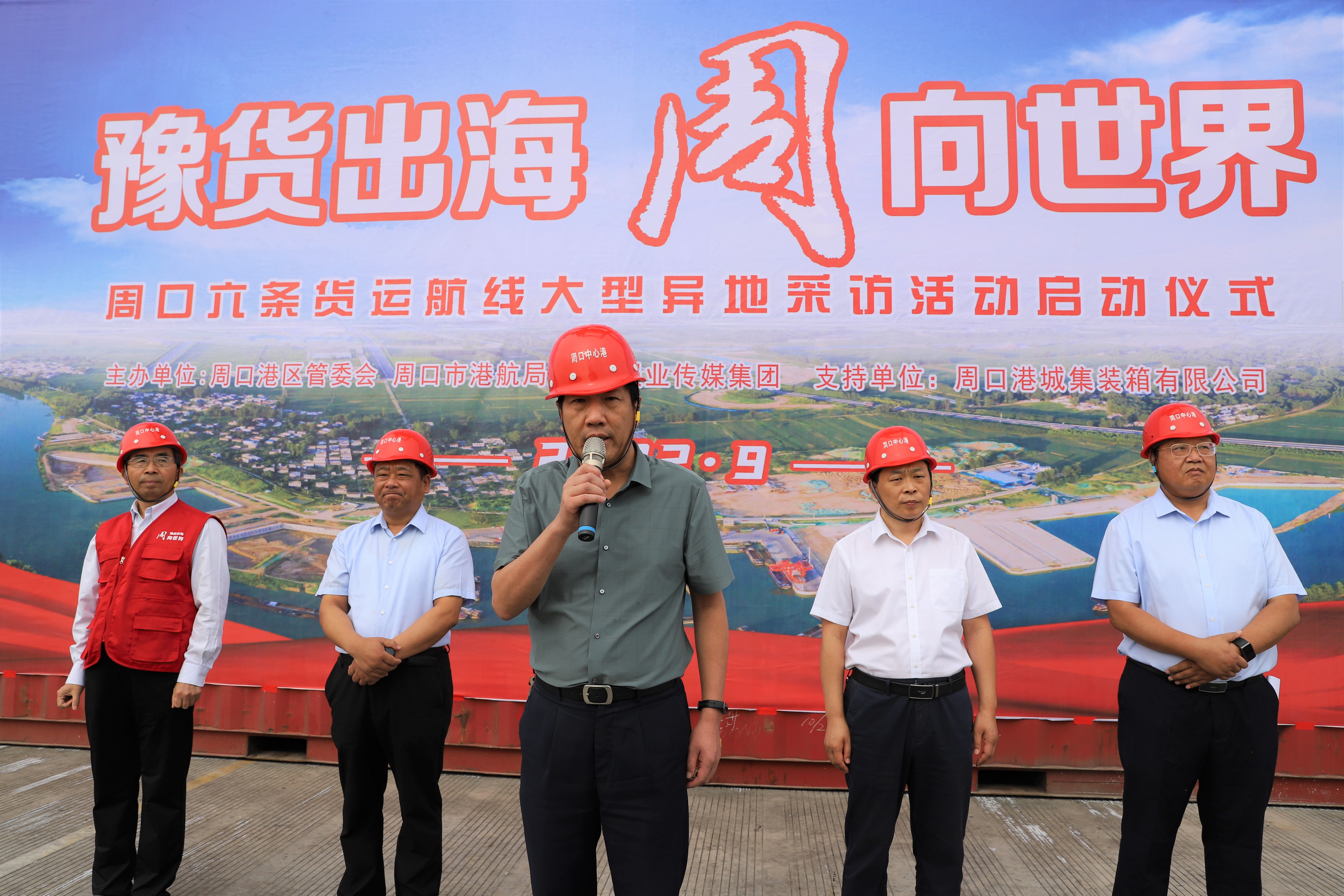 9月21日上午,由周口港區(qū)管委會(huì)、周口市港航局、周口報(bào)業(yè)傳媒集團(tuán)、周口港城集裝箱有限公司聯(lián)合組織開(kāi)展的豫貨出海 “周”向世界——周口六條貨運(yùn)集裝箱航線大型異地采訪活動(dòng)在周口中心港碼頭正式啟動(dòng)。