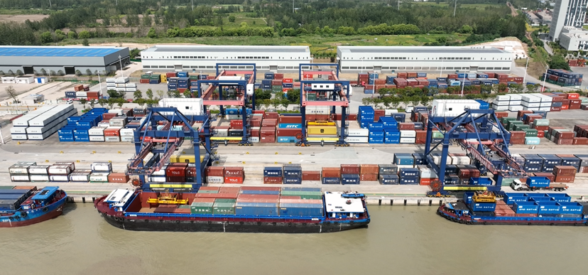 繁忙的淮安港。在自動化集裝箱碼頭,貨船頻繁進(jìn)出,集裝箱不斷被起重機(jī)吊起、裝運(yùn),繁榮忙碌而又秩序井然。據(jù)了解,目前淮安全市碼頭岸線28公里,港區(qū)7個、碼頭116座、泊位389個,其中千噸以上泊位92個,年設(shè)計吞吐能力1.1億噸,其中集裝箱碼頭吞吐能力50萬標(biāo)箱。2021年,淮安被交通運(yùn)輸部確定為“全國內(nèi)河主要港口”。運(yùn)行內(nèi)河集裝箱航線14條,上游覆蓋河南周口、山東、湖北、安徽等地,下游通達(dá)銜接江蘇沿江沿海、上海等地。2021年完成集裝箱吞吐量31.07萬標(biāo)箱。