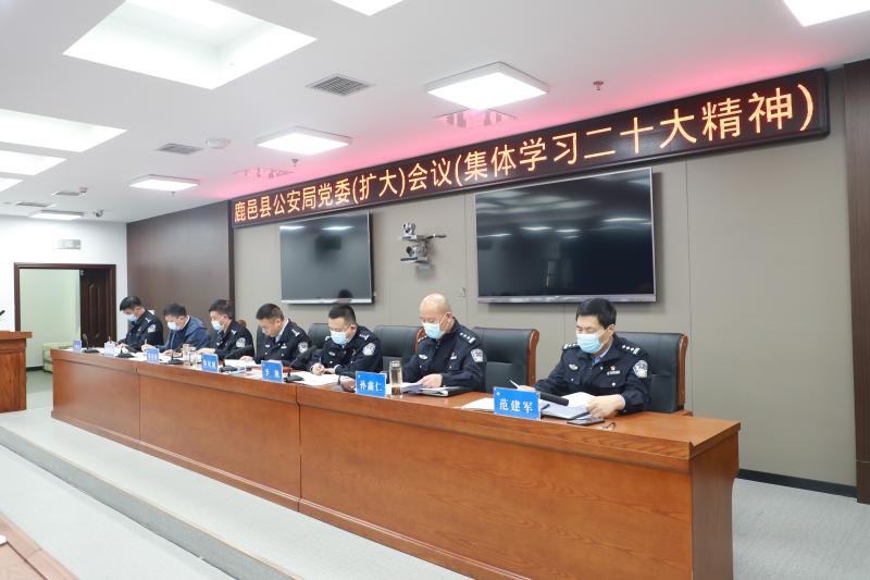 11月3日下午,鹿邑縣公安局組織召開黨委(擴大)會議,對黨的二十大、二十屆一中全會精神進行專題學(xué)習(xí)。鹿邑縣副縣長、公安局黨委書記、局長韓鳳城主持會議,局黨委班子成員,各科所隊室負責(zé)人、刑警各中隊負責(zé)人參加會議。