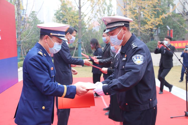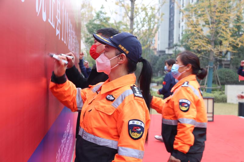 啟動儀式上,社區(qū)居民、民間救援人員等在宣傳墻上簽字,沈丘縣相關(guān)領(lǐng)導(dǎo)還為消防大隊(duì)聘任的4名消防宣傳形象大使頒發(fā)了聘任證書。