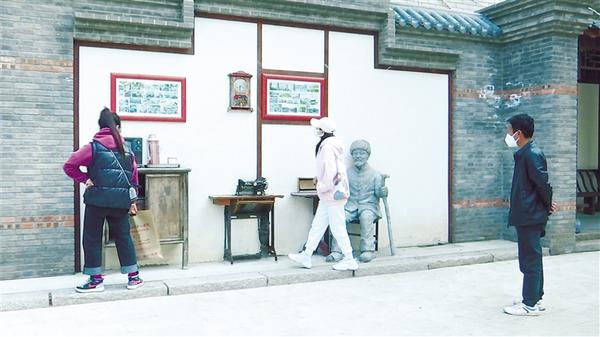 5月16日上午,記者在荷花街看到,其沿街仿古式游廊又增添了“鬧市輪蹄”雕塑,向人們再現(xiàn)了隱身到歷史深處的古街風(fēng)情。