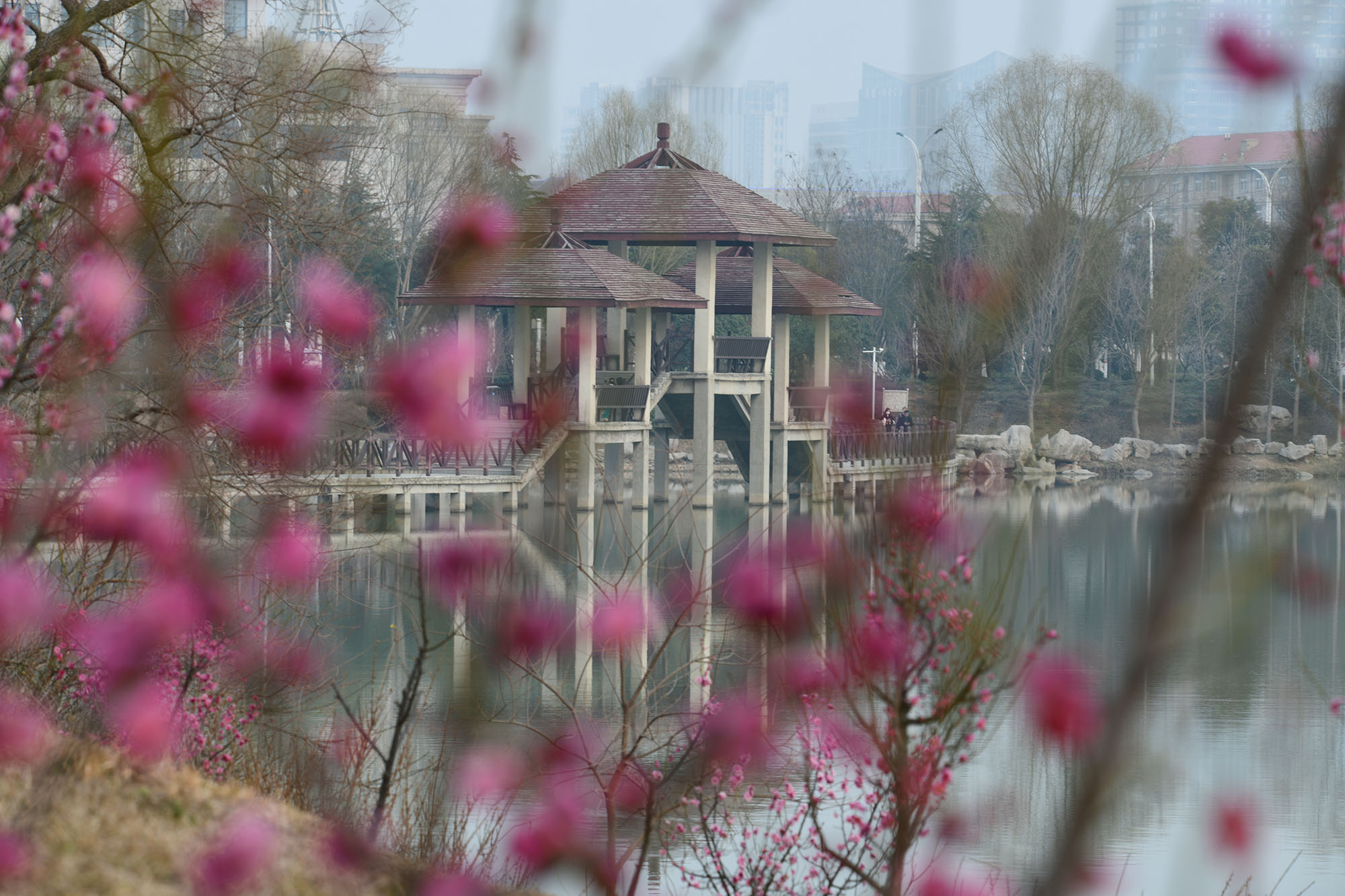2月28日下午,游人在周口公園內(nèi)賞花游園,領(lǐng)略早春的秀美景色。近日,隨著氣溫回升,梅花競(jìng)相綻放,“中原港城”周口迎來(lái)了春天的第一抹芬芳,吸引不少人們踏青賞春。
