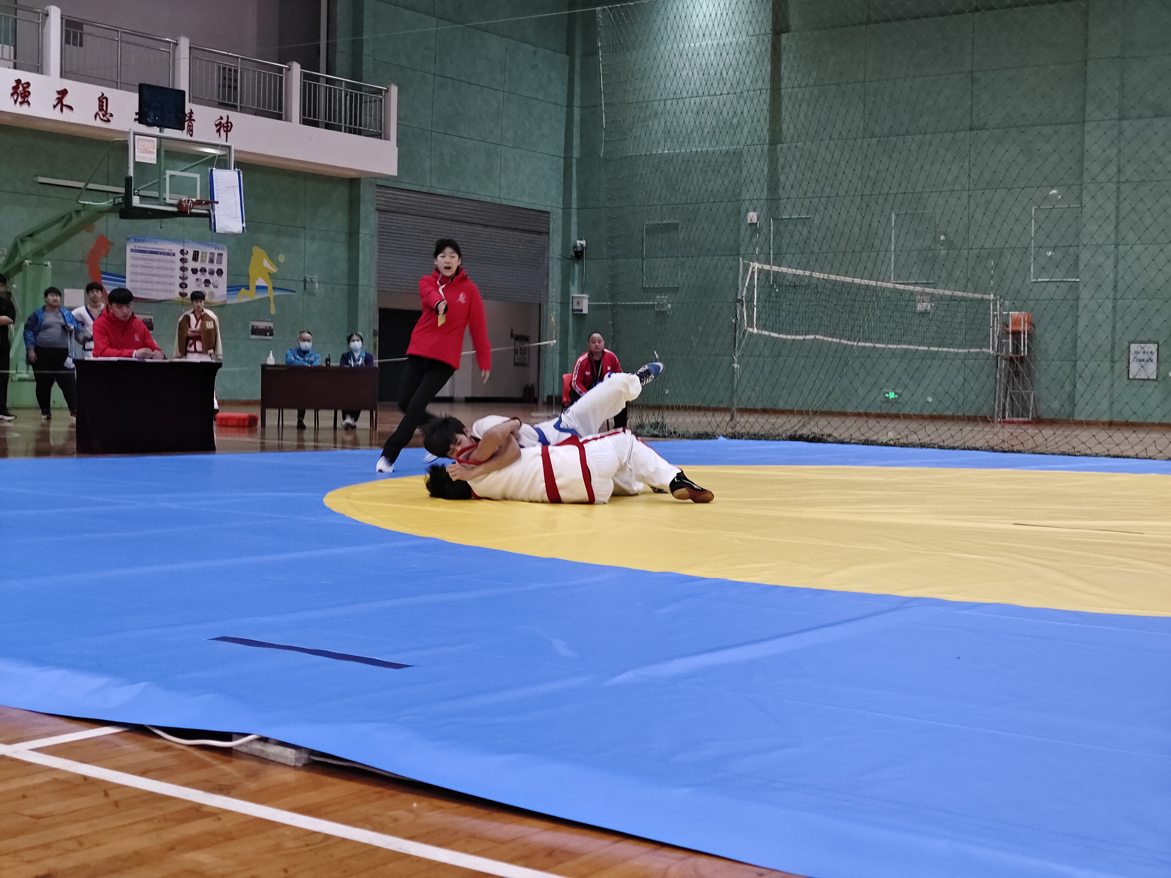 當日,河南省第九屆少數(shù)民族傳統(tǒng)體育運動會民族式摔跤競賽項目在周口師范學院老體育館開賽。絆跤是首個登場的跤種,9支代表隊參賽。該跤種以體重級別分組進行雙敗淘汰賽,共有52kg、62kg、74kg、87kg和87kg以上等5個公斤級,對應5個一等獎。經(jīng)過激烈角逐,來自漯河市、周口市和河南大學代表隊的5名選手獲得一等獎,我市選手李祥楷、劉小濤分別獲62kg、87kg一等獎。