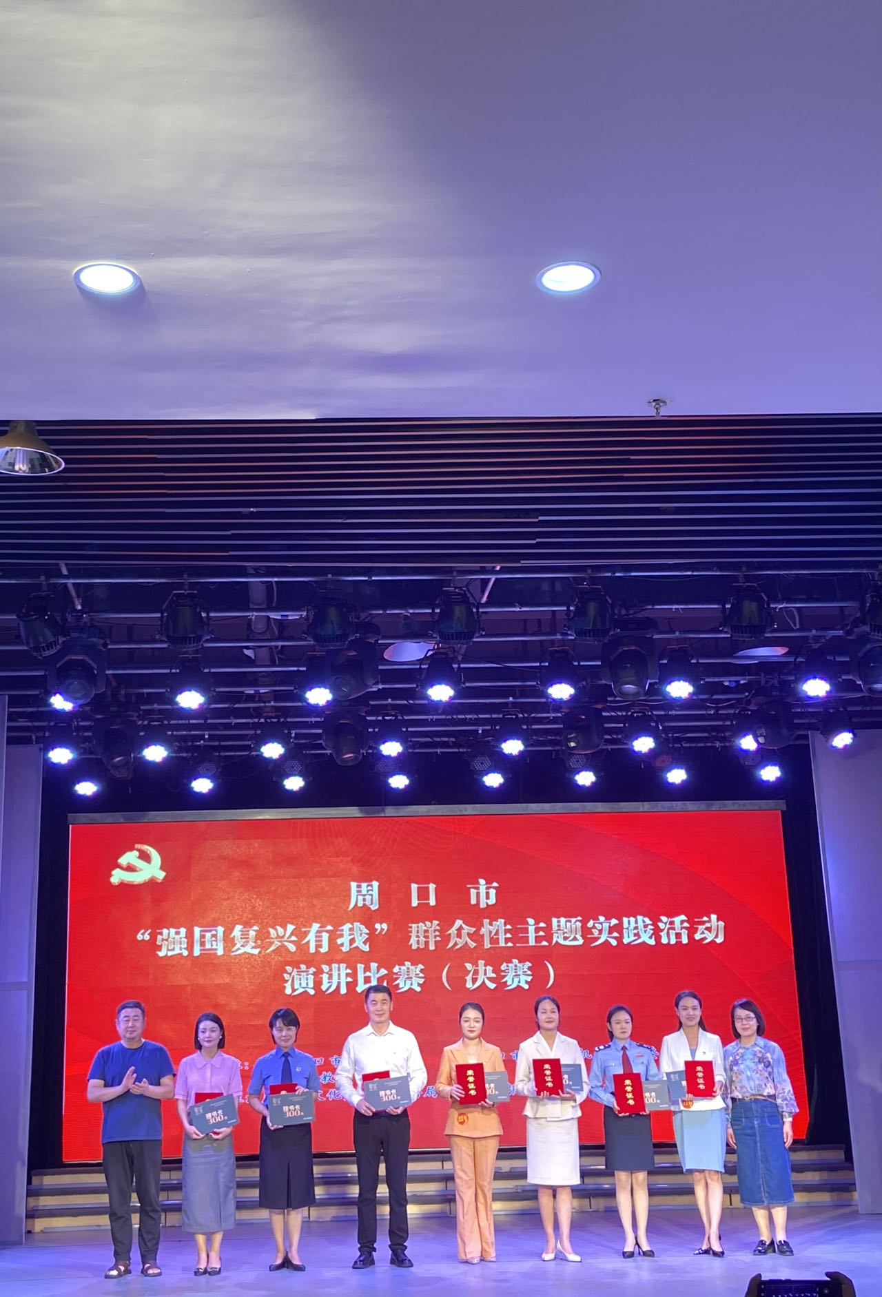 決賽過程中,選手立足中國(guó)式現(xiàn)代化全面推進(jìn)中華民族偉大復(fù)興的廣闊征程, 以各自學(xué)習(xí)、工作、生活為視角,以微故事、微黨課、微講述為主要方式,用飽滿的熱情講述了學(xué)習(xí)宣傳貫徹黨的二十大精神的個(gè)人感悟、具體實(shí)踐;講述了錨定“兩個(gè)確?!保瑢?shí)施 “ 十大戰(zhàn)略”,推進(jìn)中國(guó)式現(xiàn)代化周口實(shí)踐的實(shí)際行動(dòng);講述了繁榮發(fā)展文化事業(yè),深入實(shí)施文旅文創(chuàng)融合戰(zhàn)略周口實(shí)踐之“我”的認(rèn)識(shí)。選手們情感充沛、慷慨激昂,“強(qiáng)國(guó)有我 請(qǐng)黨放心”的口號(hào)鏗鏘有力,響徹劇場(chǎng),展示了一代周口青年奮力譜寫中國(guó)式現(xiàn)代化周口絢麗篇章的信心和決心。