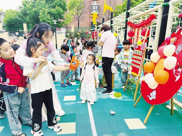 中秋節(jié)前夕,市城鄉(xiāng)一體化示范區(qū)各幼兒園積極組織開展形式多樣、內(nèi)容豐富的慶?;顒?,讓學生沉浸式感受中華優(yōu)秀傳統(tǒng)文化的獨特魅力。圖一為老師帶領(lǐng)小朋友體驗“后羿射日”游戲。