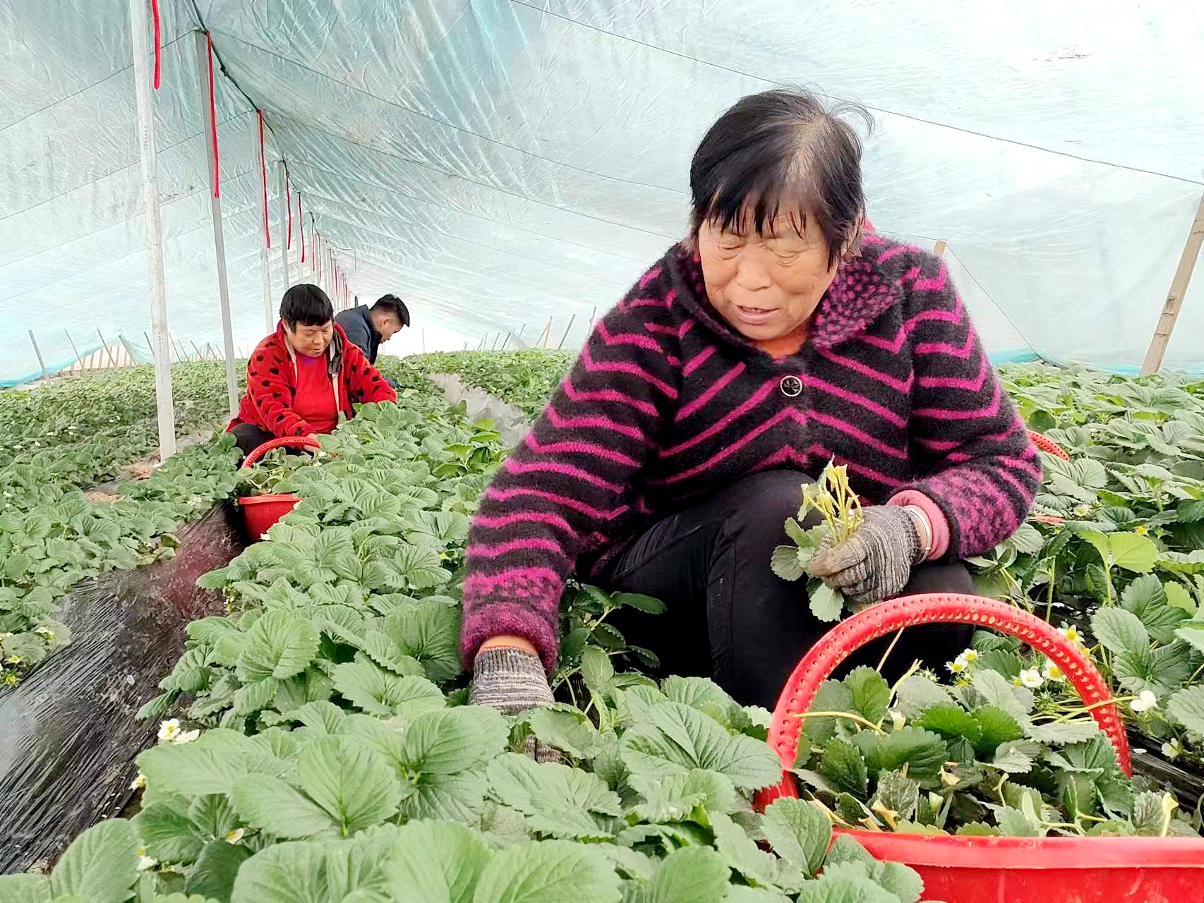 “自從這里開始種草莓,我就來這里打工了,已經(jīng)干了3年,這兒離家近,顧家掙錢兩不誤。”楊湖口鎮(zhèn)水牛張村脫貧監(jiān)測(cè)戶劉素華負(fù)責(zé)草莓園日常管護(hù)工作,對(duì)于這份工作她感到十分滿意。