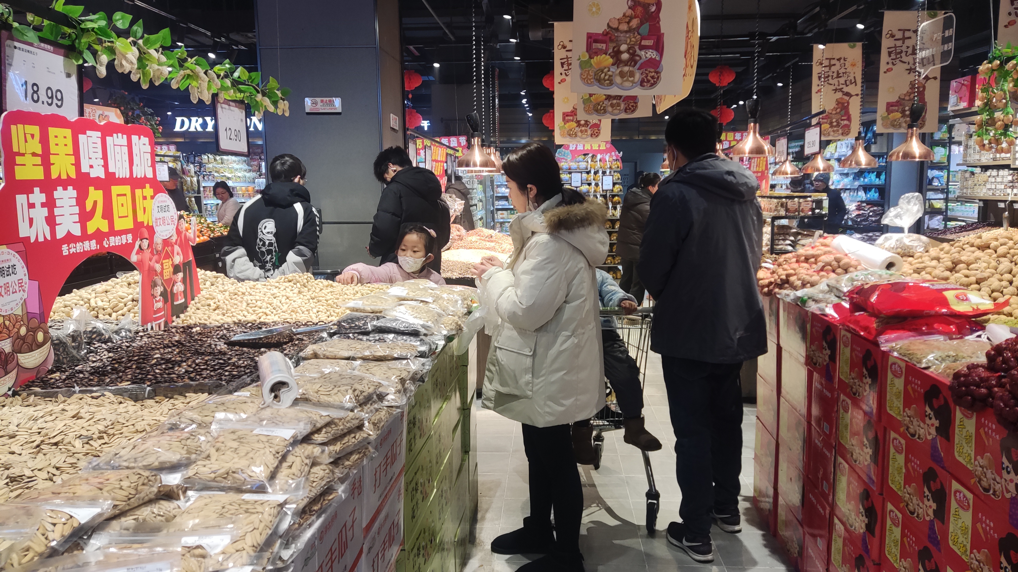春節(jié)進(jìn)入倒計(jì)時(shí),各大年貨市場(chǎng)也進(jìn)入最后的銷(xiāo)售沖刺期。近日,記者走訪年貨市場(chǎng)發(fā)現(xiàn),休閑零食銷(xiāo)售正旺,其中,堅(jiān)果大受追捧,成為不少家庭必備年貨。