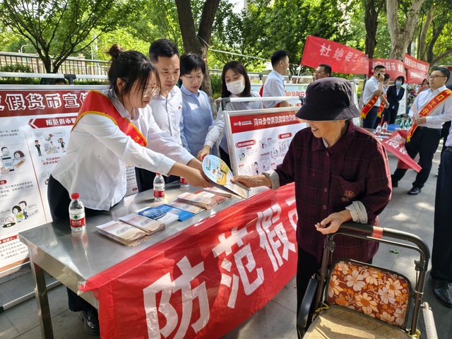活動(dòng)當(dāng)天,該行組織員工前往五一廣場(chǎng)開展集中宣傳,通過設(shè)置宣傳咨詢臺(tái),懸掛橫幅,向群眾發(fā)放反假幣、愛護(hù)人民幣和打擊假幣犯罪宣傳折頁,普及數(shù)字人民幣知識(shí),宣傳人民幣防偽知識(shí)和識(shí)別假幣騙局,傳遞“防范假幣,保護(hù)自我”理念。針對(duì)老年客戶風(fēng)險(xiǎn)意識(shí)和識(shí)假能力不足問題,該行開展“一對(duì)一,手把手”現(xiàn)場(chǎng)教授假幣“看、摸、聽、測(cè)”等識(shí)別方法,切實(shí)守牢老年客戶的“錢袋子”。