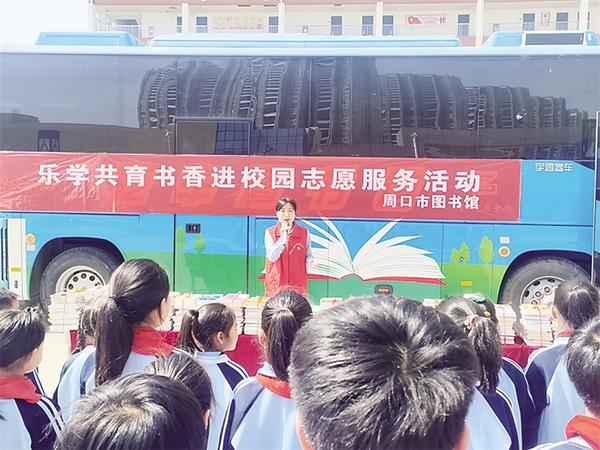周口的鄉(xiāng)村里,也藏著對書的渴望。2016年我們買了第一輛流動圖書車,3000多冊書裝在車上,像一座移動的小圖書館。這些年,車轍印遍布各縣(市、區(qū))的鄉(xiāng)村學(xué)校、脫貧點(diǎn),2024年我們又在淮陽區(qū)大連鄉(xiāng)中心小學(xué)等5個地方建了新的借閱點(diǎn),累計(jì)已有23個點(diǎn)。沈丘縣卞路口鄉(xiāng)大郭莊新希望留守兒童之家、商水縣舒莊鄉(xiāng)正弘希望小學(xué)等學(xué)校的孩子們,在家門口就能看到紅色故事、傳統(tǒng)文化、科普教育等書籍。同時,我們精心挑選農(nóng)作物栽培種植、農(nóng)產(chǎn)品加工、養(yǎng)殖、手工藝品制作等各類圖書,并邀請相關(guān)專家為農(nóng)民開展信息咨詢服務(wù)。