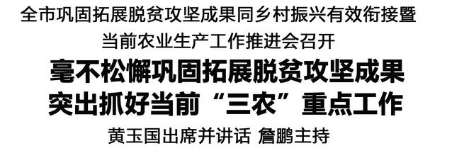 本報(bào)訊(記者 王艷) 11月10日,全市鞏固拓展脫貧攻堅(jiān)成果同鄉(xiāng)村振興有效銜接暨當(dāng)前農(nóng)業(yè)生產(chǎn)工作推進(jìn)會召開,對鞏固拓展脫貧攻堅(jiān)成果、抓好當(dāng)前農(nóng)業(yè)生產(chǎn)工作進(jìn)行再動(dòng)員再部署。市委書記黃玉國出席并講話。市長詹鵬主持。