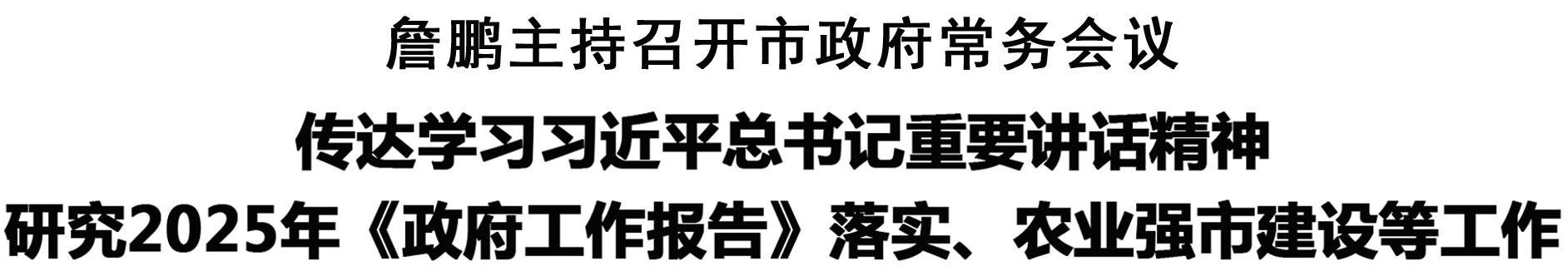 本報訊 (記者 李鳳霞) 11月14日,市長詹鵬主持召開市政府常務會議,傳達學習習近平總書記在廣東考察時的重要講話精神,以及聽取海南自由貿易港建設工作匯報時的重要講話精神,研究2025年《政府工作報告》落實、農業(yè)強市建設等工作。秦勝軍、梁建松、孔陽、朱向陽、張建黨、程若光、王富生、王文峰出席會議。