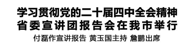 本報訊(記者 王艷 王晨) 按照省委統(tǒng)一部署,11月24日,學習貫徹黨的二十屆四中全會精神省委宣講團報告會在我市舉行。省委宣講團成員,省交通運輸廳黨組書記、廳長付磊作宣講報告。市委書記黃玉國主持報告會,市長詹鵬出席。