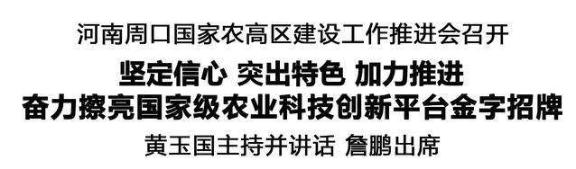 本報(bào)訊 (記者 王艷) 12月3日,市委書(shū)記黃玉國(guó)主持召開(kāi)河南周口國(guó)家農(nóng)高區(qū)建設(shè)工作推進(jìn)會(huì),聽(tīng)取工作匯報(bào),對(duì)農(nóng)高區(qū)各項(xiàng)工作進(jìn)行深入研究、安排部署,進(jìn)一步統(tǒng)一思想、凝聚共識(shí),推動(dòng)農(nóng)高區(qū)建設(shè)取得新成效,奮力擦亮國(guó)家級(jí)農(nóng)業(yè)科技創(chuàng)新平臺(tái)金字招牌。市長(zhǎng)詹鵬出席。