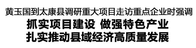 調研中,黃玉國聽取太康縣項目建設、招商引資等重點工作情況匯報,強調要堅持穩(wěn)中求進,進一步認清形勢,增強壓力感、緊迫感和責任感,全力扭轉經濟增長乏力局面。要抓緊抓實項目建設,真正把工作重心和精力放在抓項目上,堅持向政策要機遇、向市場要項目,保證數量、做實項目、提升效益,算好投入產出賬,以高質量項目支撐縣域經濟高質量發(fā)展。要努力提升城鄉(xiāng)面貌,用心用力加強城市建設管理,持續(xù)推進農村人居環(huán)境整治,做優(yōu)商貿服務業(yè),激活城鄉(xiāng)發(fā)展活力。要振奮精神、強力作為、狠抓落實,領導干部要帶頭樹立和踐行正確政績觀,敢擔當、作表率,堅定發(fā)展信心,勇于攻堅克難,健全工作機制,鼓勵擔當作為,以新氣象新作為推動各項工作取得新成效。