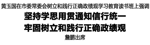 本報(bào)訊 (記者 王艷 王晨) 根據(jù)樹立和踐行正確政績(jī)觀學(xué)習(xí)教育工作安排,3月16日至17日,市委常委會(huì)用兩天時(shí)間,采取集中自學(xué)和交流研討相結(jié)合的方式,舉行樹立和踐行正確政績(jī)觀學(xué)習(xí)教育讀書班。市委書記黃玉國(guó)主持并講話,強(qiáng)調(diào)要深入學(xué)習(xí)貫徹習(xí)近平總書記關(guān)于學(xué)習(xí)教育的重要指示精神、關(guān)于樹立和踐行正確政績(jī)觀的重要論述,全面落實(shí)立黨為公、為民造福、科學(xué)決策、真抓實(shí)干總要求,切實(shí)增強(qiáng)樹立和踐行正確政績(jī)觀的思想自覺(jué)和行動(dòng)自覺(jué),為實(shí)現(xiàn)“十五五”良好開局、奮力譜寫中原大地推進(jìn)中國(guó)式現(xiàn)代化周口新篇章提供堅(jiān)強(qiáng)保障。市長(zhǎng)詹鵬出席。